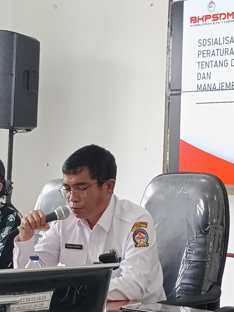 Badan Kepegawaian dan Pengembangan Sumber Daya Manusia (BKPSDM) Kabupaten Toba melaksanakan Sosialisasi Peraturan Pemerintah Nomor 94 Tahun 2021 tentang Disiplin PNS dan Manajemen ASN. Kegiatan ini melibatkan seluruh Kepala Sub Bagian Umum dan Kepegawaian (Kasubbag Umpeg) Organisasi Perangkat Daerah (OPD) se-Kabupaten Toba, pada Rabu, 24 September 2025 di Ruang Rapat Staf Ahli Kabupaten Toba.